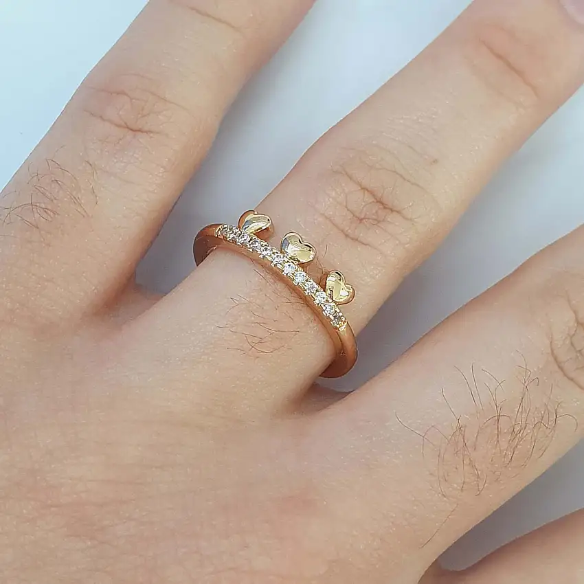 • Anel Com Zircônia Dourado Amor