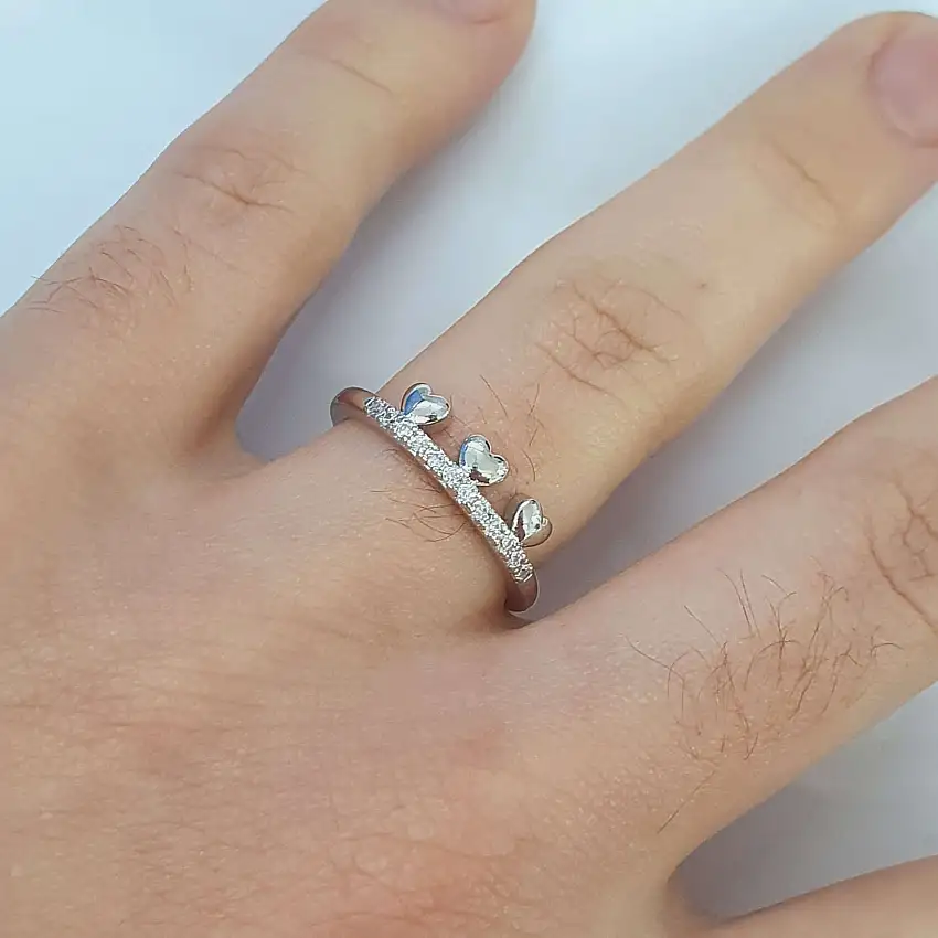 Anel Com Zircônia Coração Prata