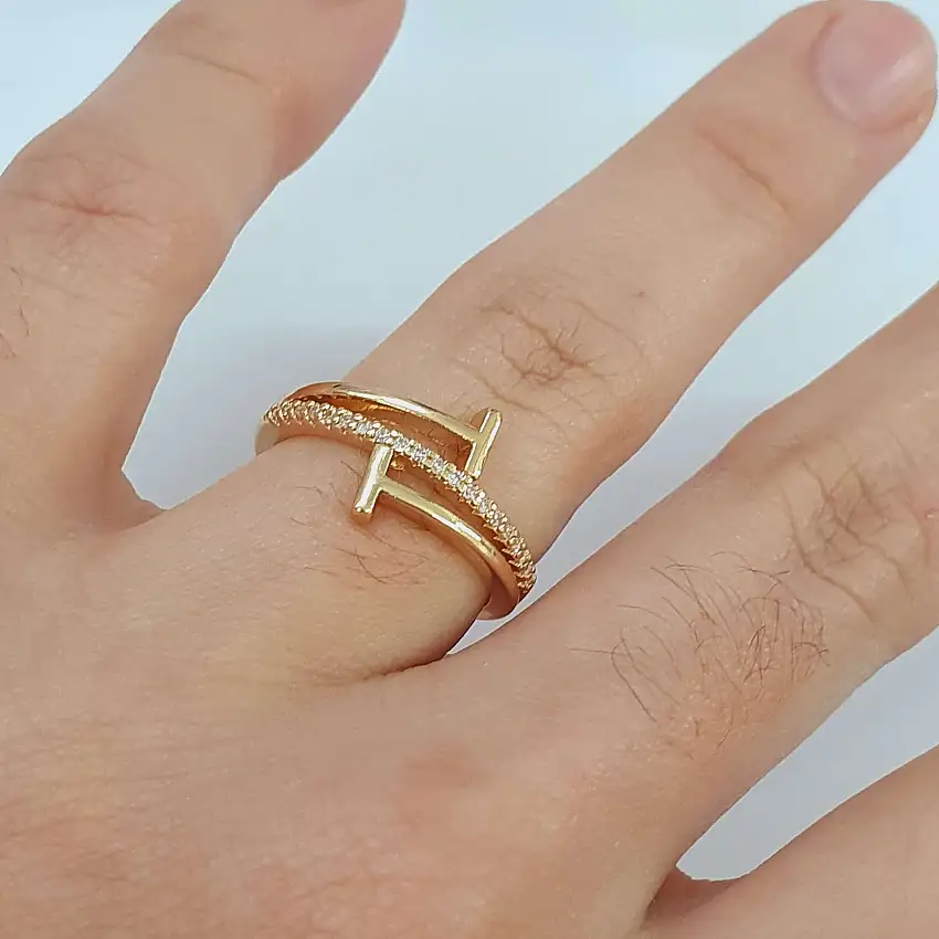 • Anel Com Zircônia Cruz Dourado