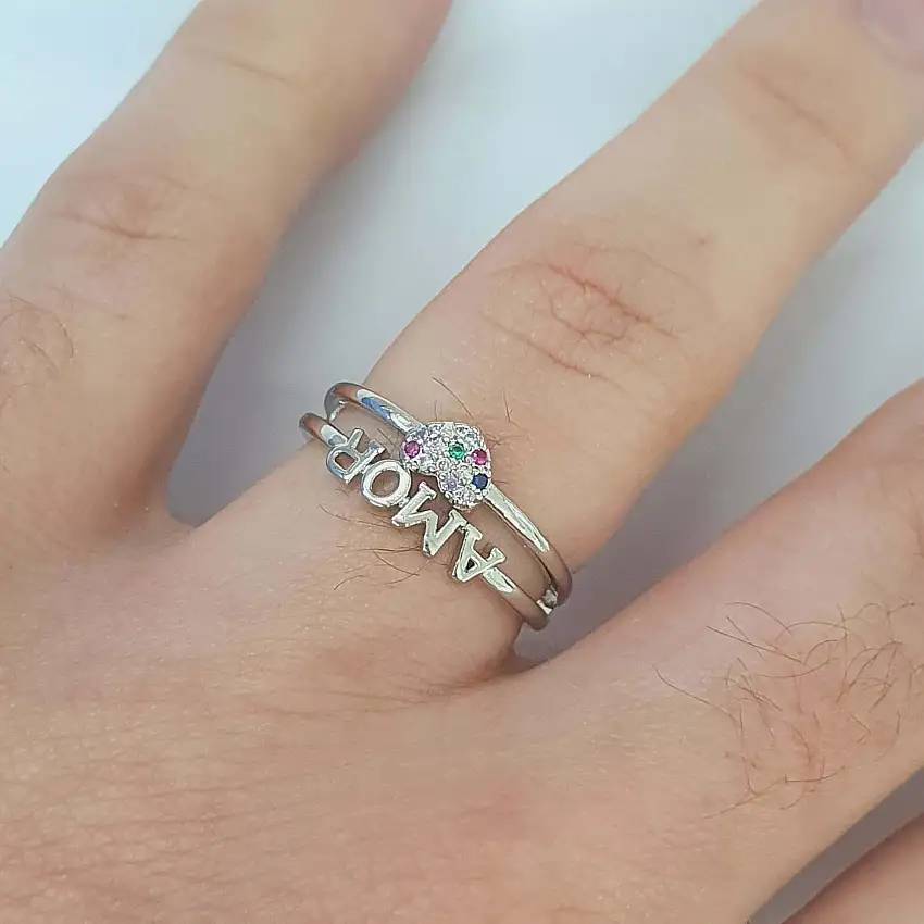 Anel Com Zircônia Amor Prata