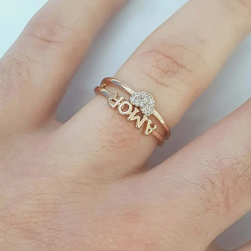 Anel Com Zircônia Dourado Amor