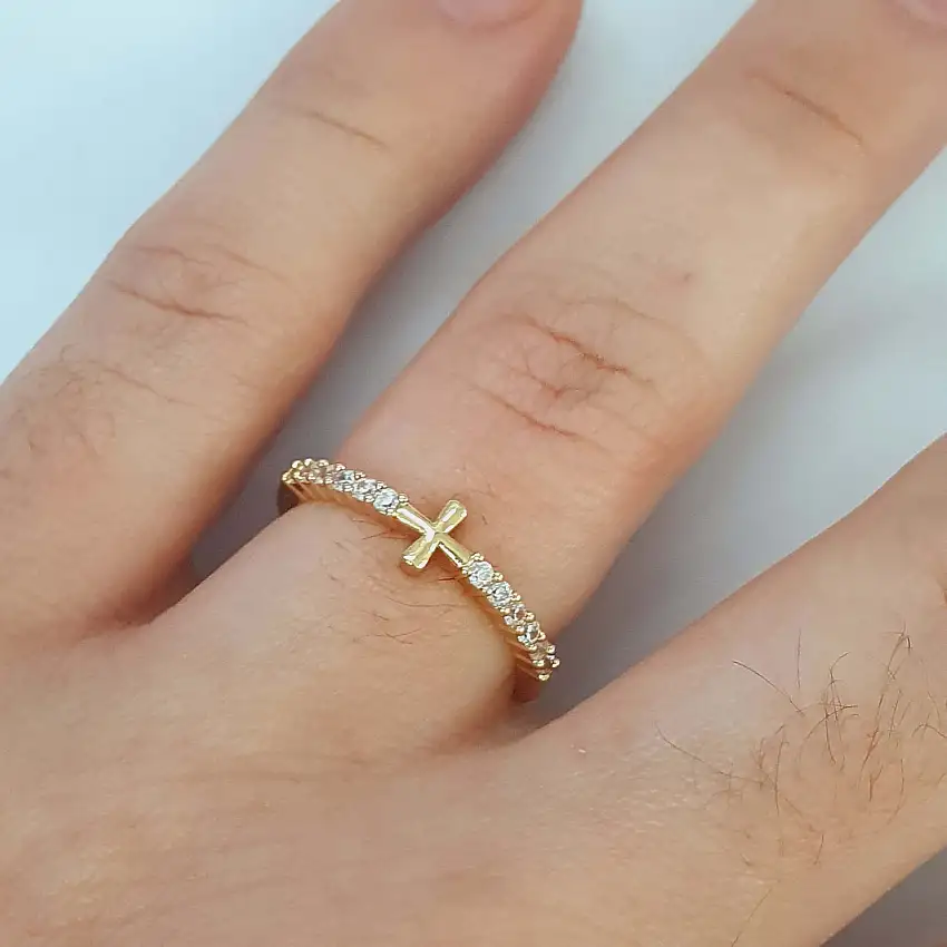 Anel Com Zircônia Cruz Dourado