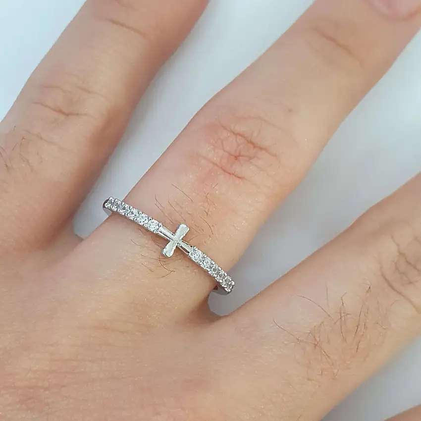 Anel Com Zircônia Cruz Prata