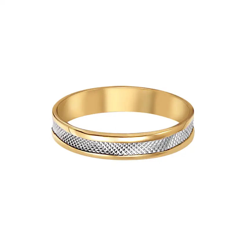 Aliança trabalhada em ouro amarelo e branco 18K 750.Tamanho: 4 milímetros.