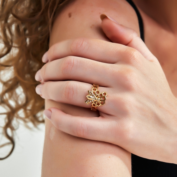 Promoção!anel abelha e colmeia banho de ouro 18k