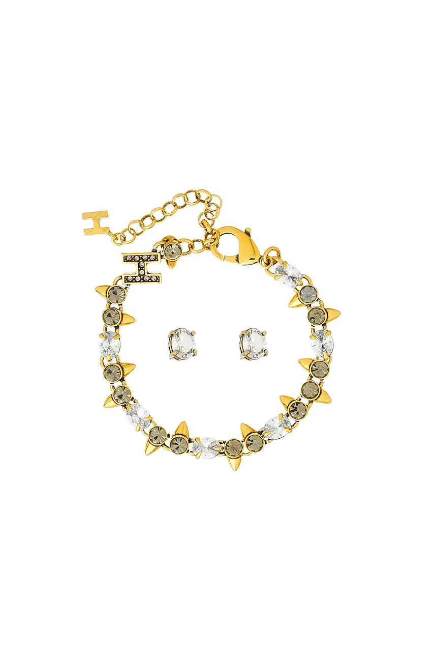 Promoção!Pulseira Strass e Brinco Sementes Ouro Vintage