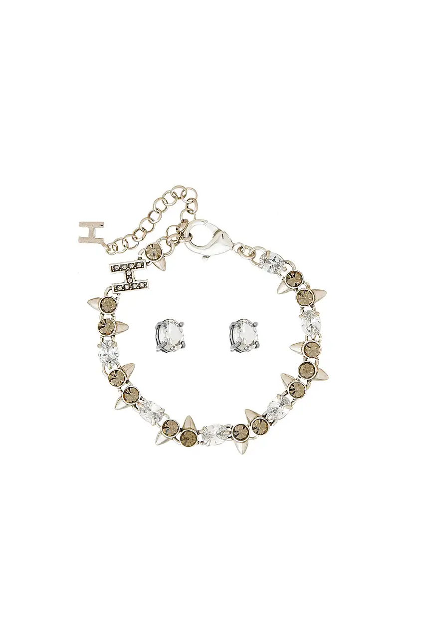 Promoção!Pulseira Strass e Brinco Sementes Prata Boho