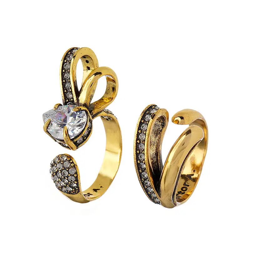 Promoção!Anel Duo Laço Ouro Vintage
