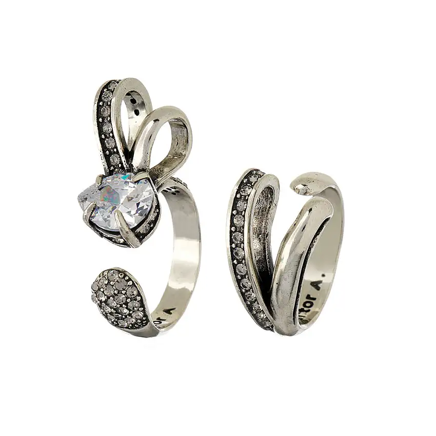 Promoção!Anel Duo Laço Prata Boho