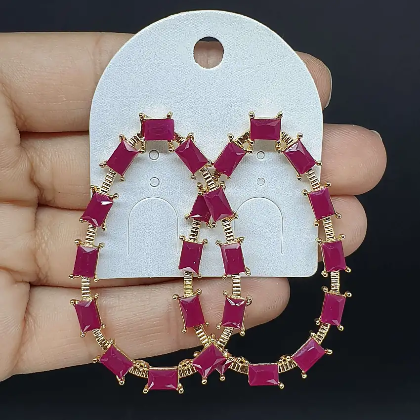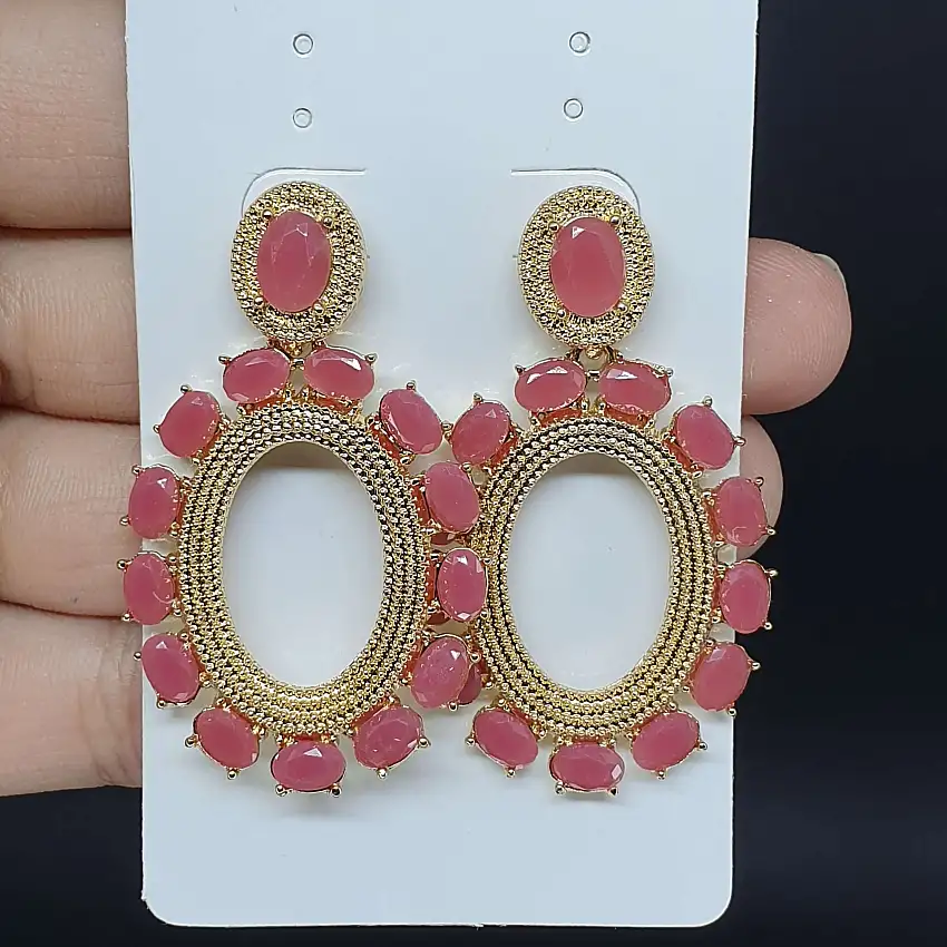 Promoção!Brinco Dourado Rosa Escuro