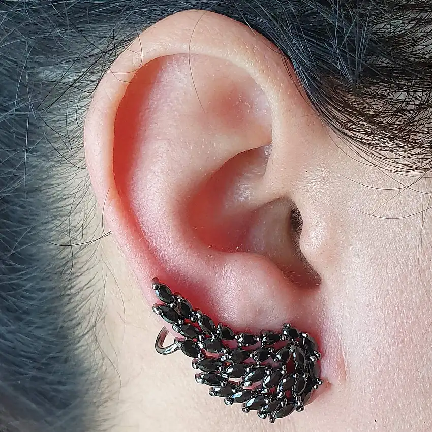 Promoção!Brinco Ear Cuff Semi Joia Asa Ródio Negro Hematita