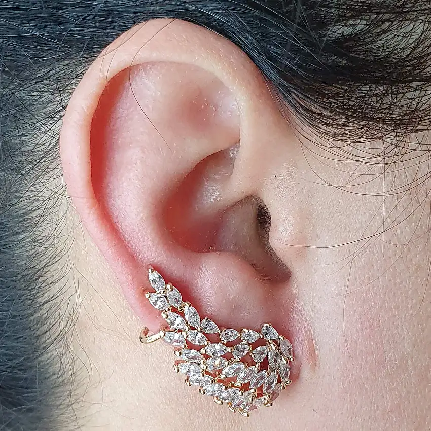 Promoção!Brinco Ear Cuff Semi Joia Asa Ouro Branco