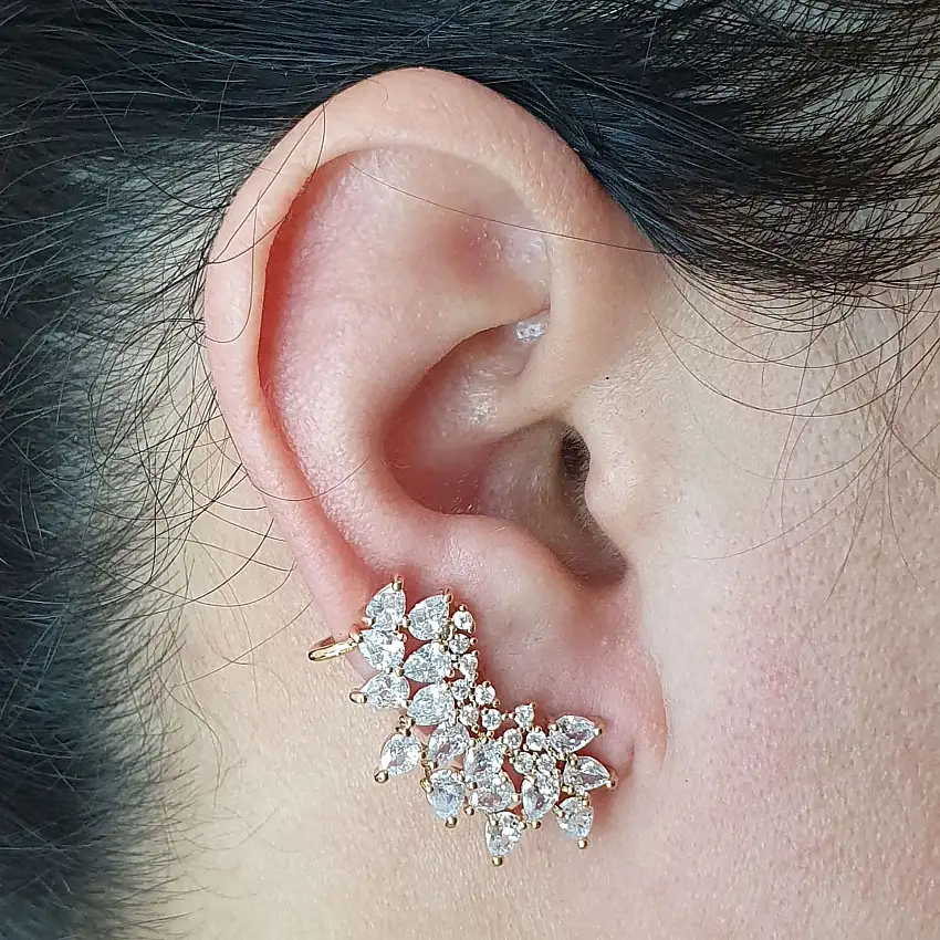 Promoção!Brinco Ear Cuff Semi Joia Kamilly Ouro Branco