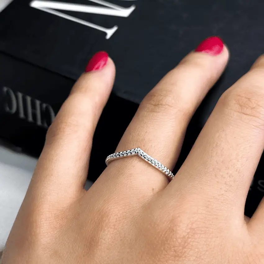 Promoção!Anel de prata 925 com ponta em “V” pontilhado