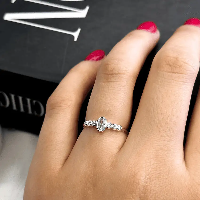 Promoção!Anel de prata 925 com zircônia oval e mini cravejados