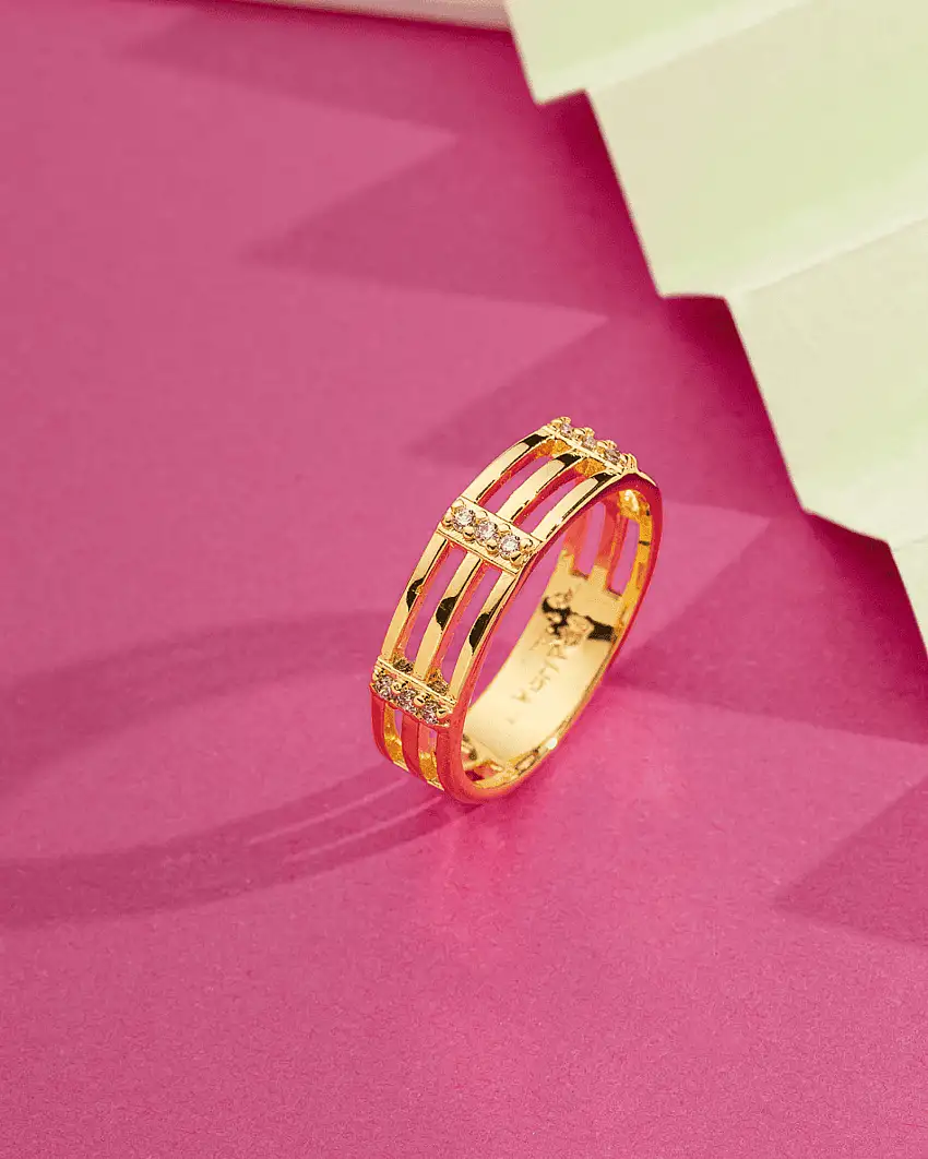 Promoção!Anel Aro Fios Vazados Filetes Zircônia Folheado A Ouro 18K