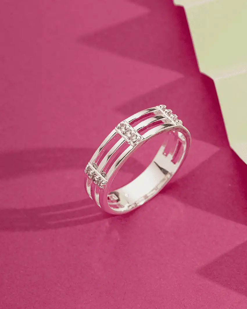 Promoção!Anel Aro Fios Vazados Filetes Zircônia Banhado a Prata 925