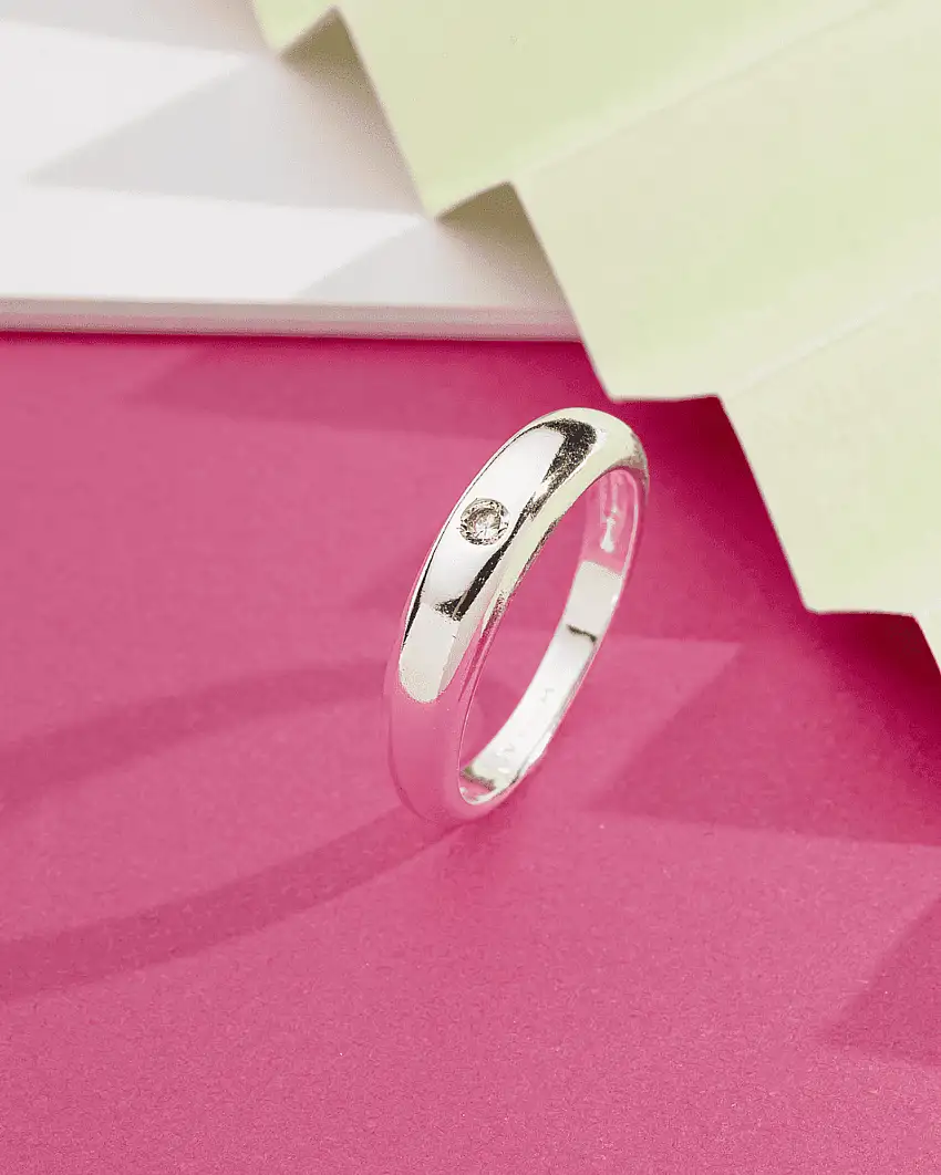 Promoção!Anel Aro Grosso Zircônia No Centro Banhado a Prata 925