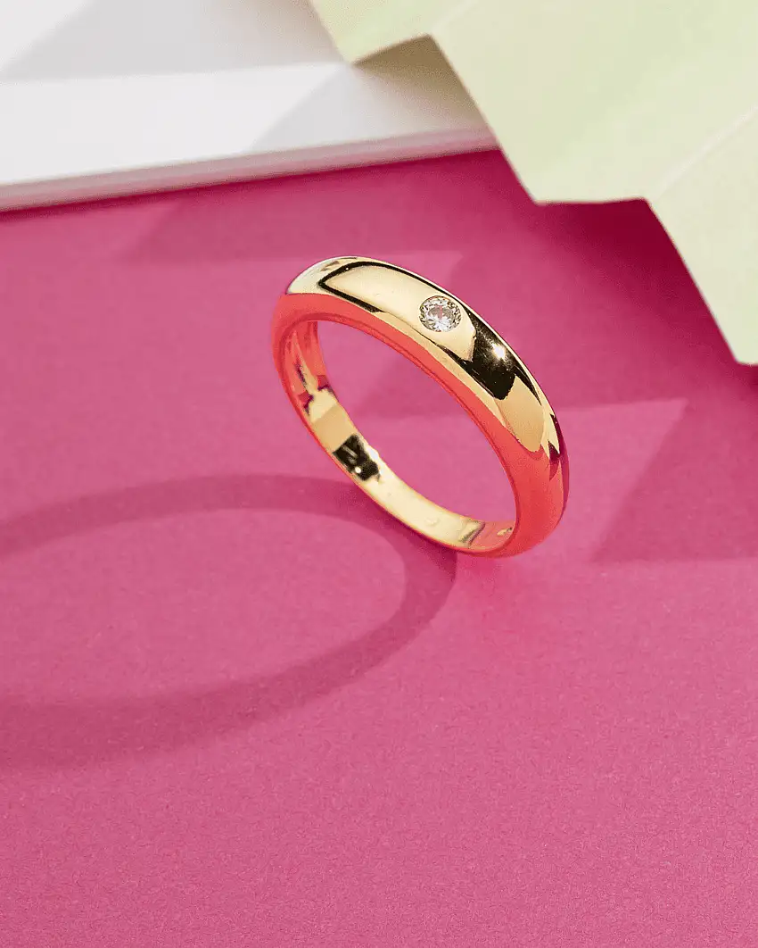 Promoção!Anel Aro Grosso Zircônia No Centro Folheado A Ouro 18K