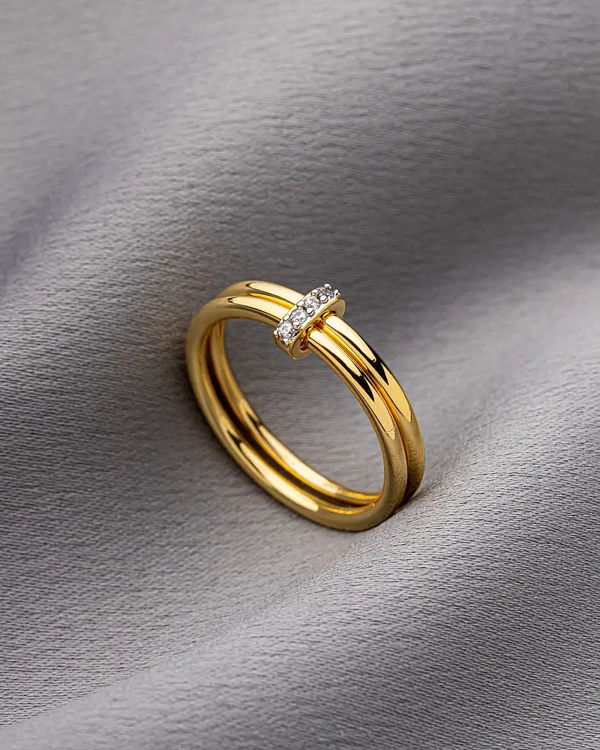 Promoção!Anel Aro Duplo Filete Movel Cravejado Folheado a Ouro 18K