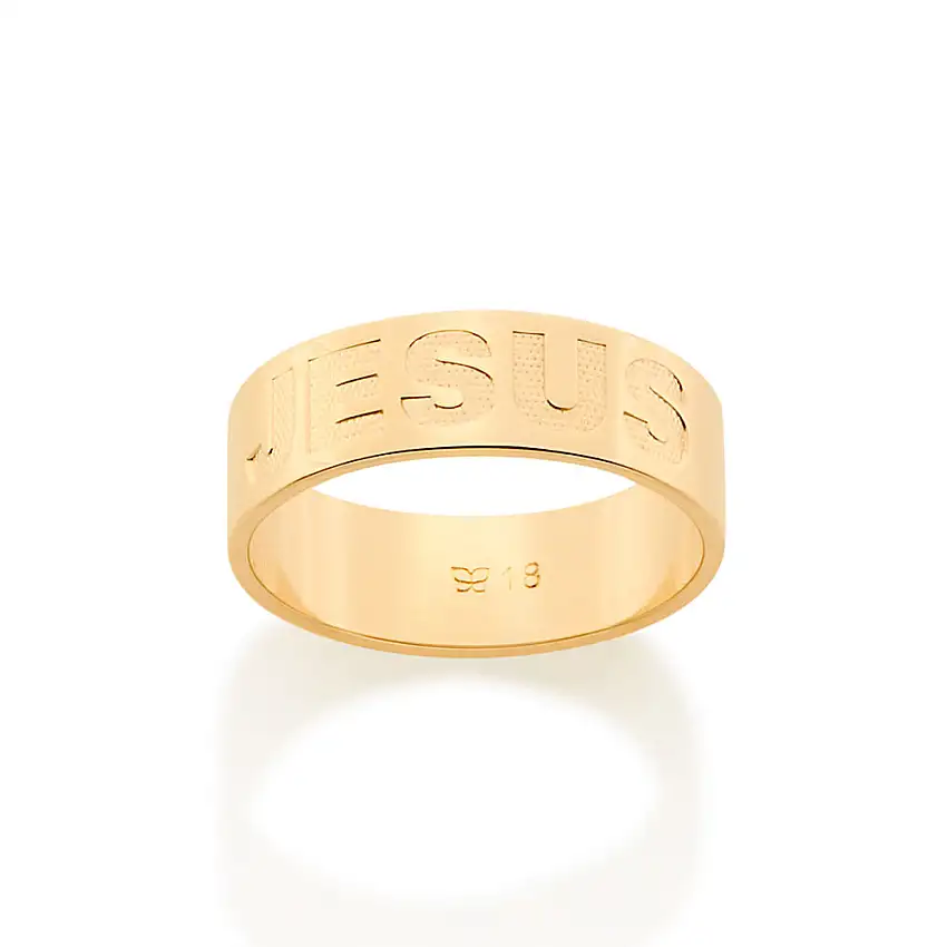 Promoção!Alianças | JOIA BANHADA OURO 18K | ALIANÇA ESCRITO JESUS BANHADA A OURO 18K – Rommanel