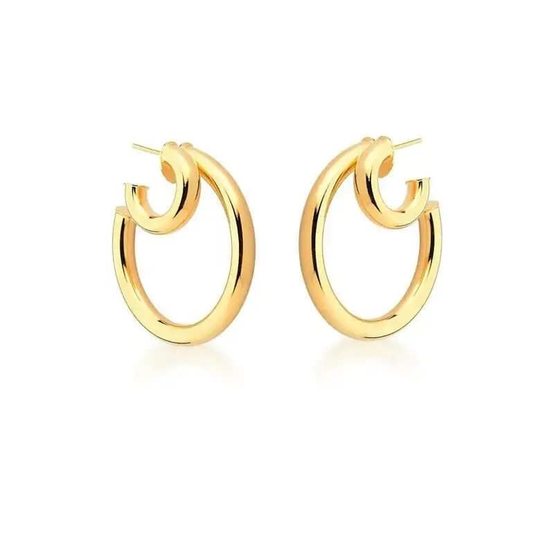 Brinco argolinha com 3 círculos decrescentes cravejado em micro zircônias brancas no banho de ródio branco.